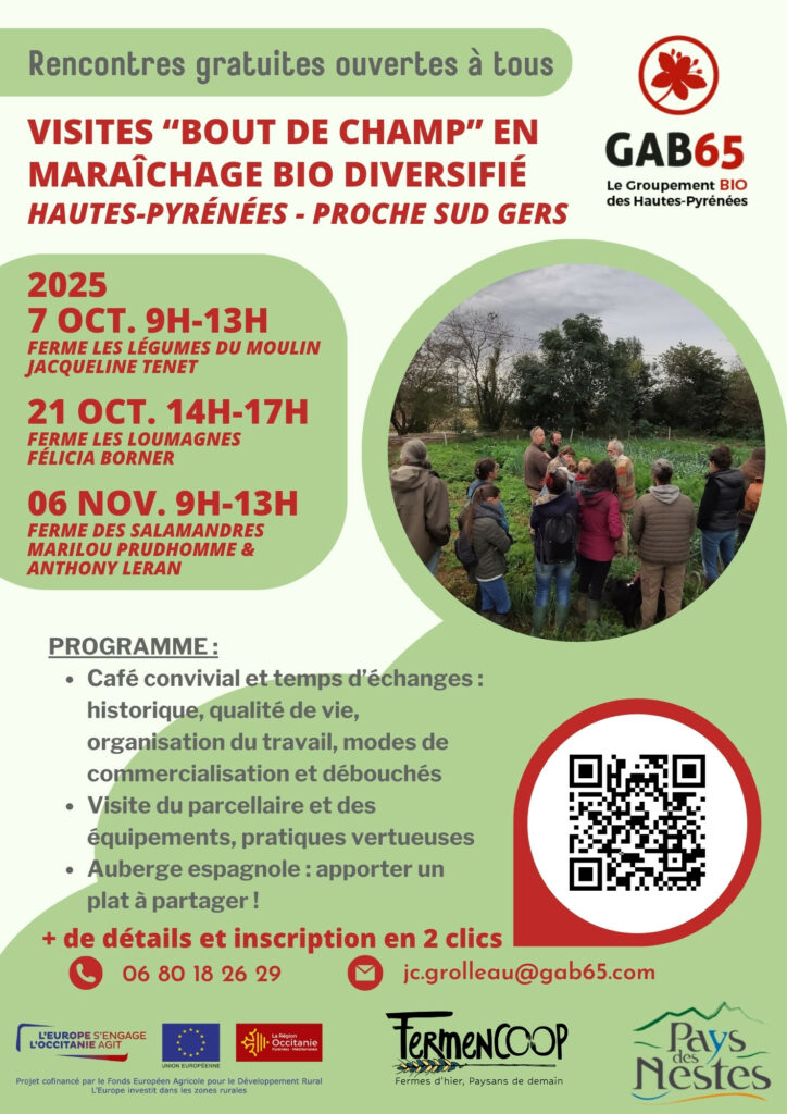 Rencontre gratuite et ouverte à tous financée par FEADER, à destination des agriculteurs, salarié agricole, porteur de projet, étudiant...